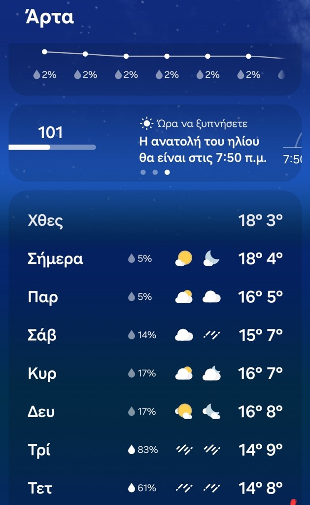 | @mitsaras, και εδώ που μένω μιά από τα ίδια. Κάθε μεσημέρι έχει 18 σήμερα είχε 19. Το πρωί και το βράδυ κρύο μολαταύτα. «Μουσικό αλατοπίπερο» με τον Βαγγέλη Ρίζο |